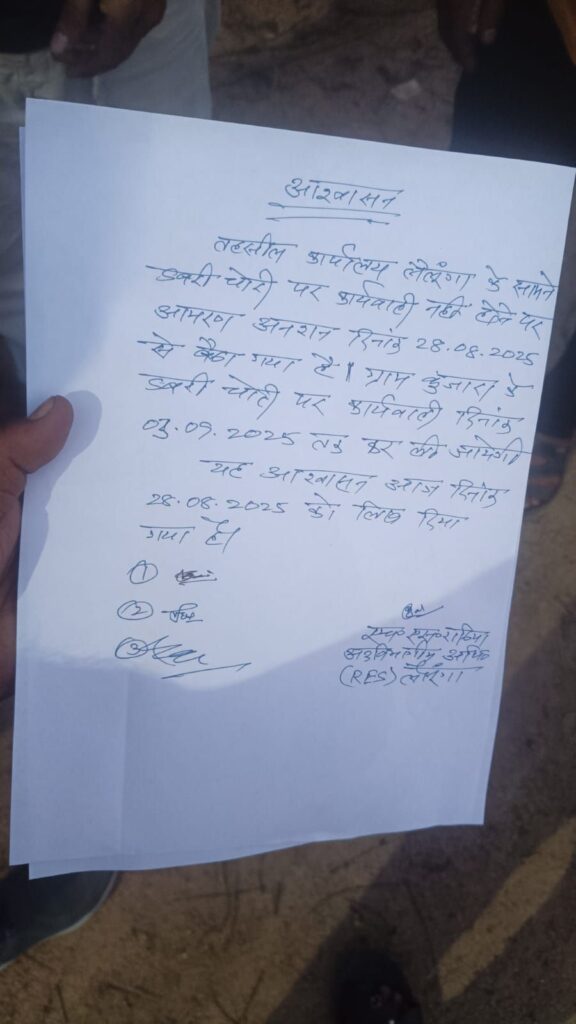 लैलूंगा में नवा खाई पर बवाल: भूखे बैठे नरेश गुप्ता ने झकझोरा प्रशासन – SDO ने दिया 3 सितंबर तक जांच का भरोसा