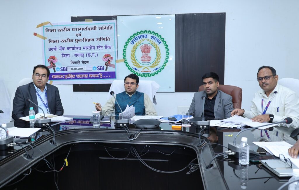 रायगढ़, 27 मार्च 2025/ कलेक्टर श्री कार्तिकेया गोयल ने कलेक्टोरेट सभाकक्ष में जिला स्तरीय परामर्शदात्री एवं पुनरीक्षण समिति की बैठक ली। कलेक्टर श्री गोयल ने प्राथमिकता क्षेत्र की उपलब्धि, कमजोर वर्ग को ऋण, महिलाओं को ऋण, अल्पसंख्यक वर्ग को ऋण, राष्ट्रीय ग्रामीण आजीविका मिशन, राष्ट्रीय शहरी आजीविका मिशन, खादी ग्रामोद्योग, जिला व्यापार एवं उद्योग, अंत्योदय स्वरोजगार योजना एवं आदिवासी स्वरोजगार योजनाए किसान क्रेडिट कार्ड जैसे विभिन्न योजनाओं विस्तृत समीक्षा की। उन्होंने शासन की विभिन्न ऋण योजनाओं के बैंकों में लंबित प्रकरणों की समीक्षा करते हुए प्राथमिकता से निराकरण के निर्देश दिए। इस अवसर पर सीईओ जिला पंचायत श्री जितेन्द्र यादव उपस्थित रहे।